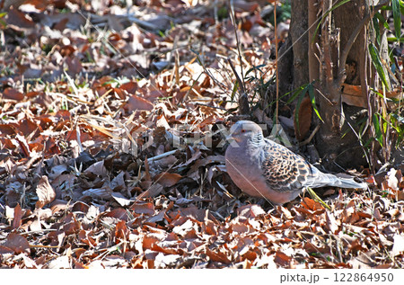 水辺で餌を探すヤマバト(キジバト) 京都市高野川