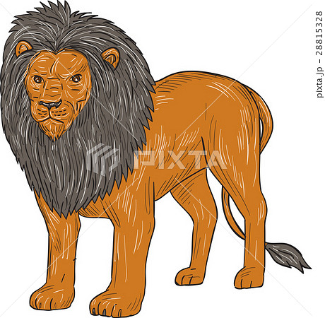 Lion Hunting Surveying Prey Drawing