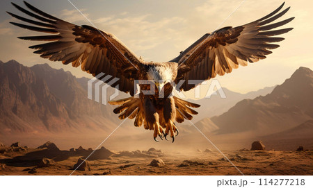 an eagle is landing in the desert , Generate AI