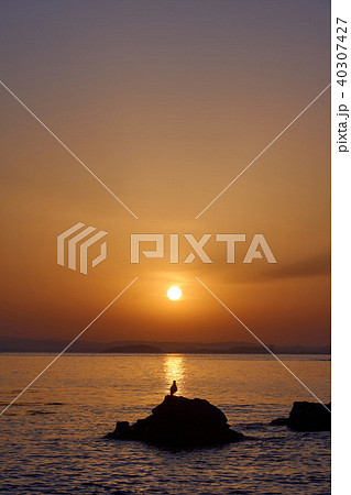 夕暮れの海 千葉県館山市 館山湾 鏡ヶ浦 夕日に染まる 夕暮れの海