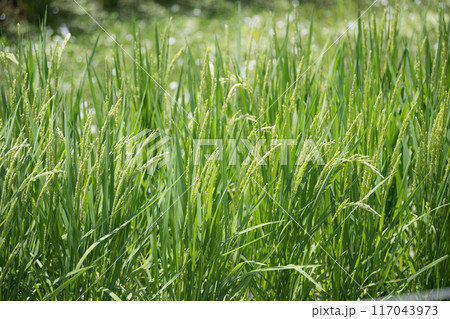 雨上がりの稲穂(夏の収穫期の香長平野の田んぼ)
