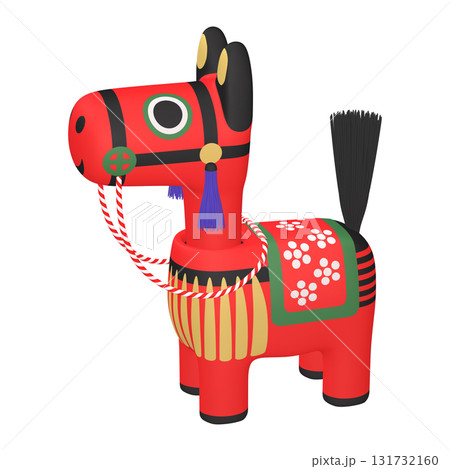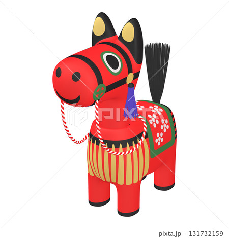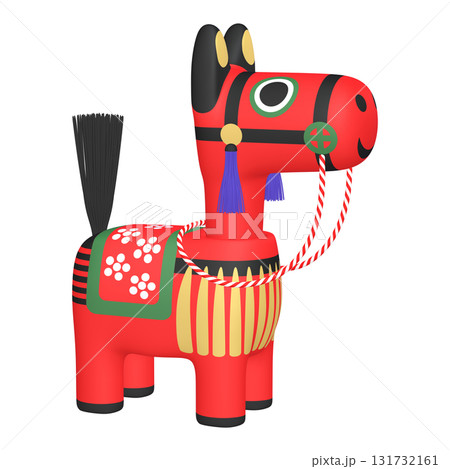 干支のイラスト素材 午年 馬の首振り人形(1_6) 赤