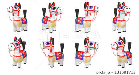 干支のイラスト素材 午年 馬の首振り人形(1) カット八点セット