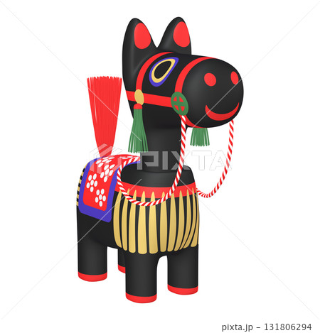 干支のイラスト素材 午年 馬の首振り人形(1_1) 黒