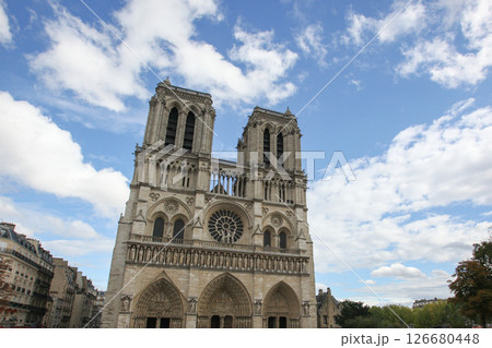 Front view of Notre-Dame, famous place of visit of Paris, sunrise photo