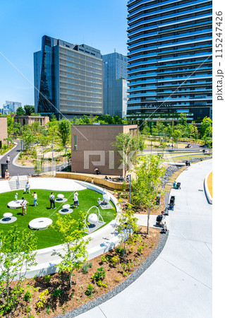 東京丸ノ内の緑のあるオフィス街の風景