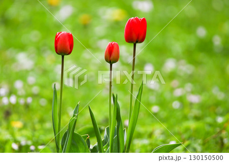 Colorful wildflowers blooming in a lush field during a bright spring morning