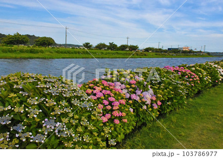 【千葉県香取郡多古町】あじさい遊歩道 川辺に咲くアジサイ