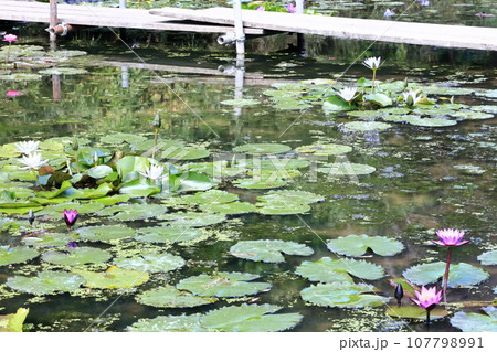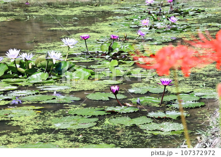 【香川県】 彼岸の(宝山湖・香川用水調整池)の水辺に咲く(睡蓮・スイレン)