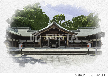 水彩画風 乃木神社 社殿 香川県善通寺市