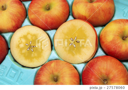 蜜入りりんご こみつ 断面 写真素材