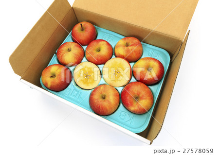 箱入りリンゴ(こみつリンゴ) 写真素材