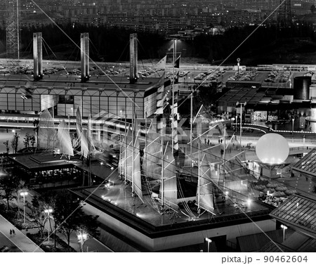 <大阪府>大阪万博、香港館、奥左から英国館、チェコスロバキア館