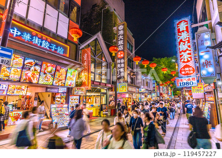 日本の横浜都市景観 横浜中華街などを望む。左は香港路(夜景)