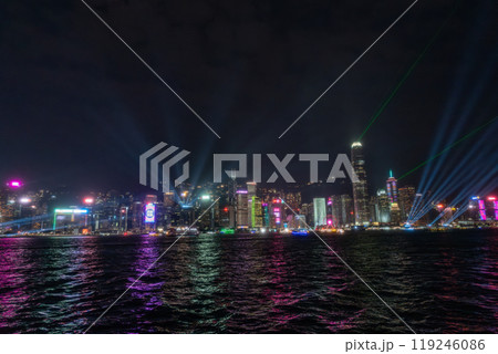 Light show in Hong Kong at night and Victoria Harbour