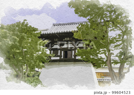 水彩画風 新薬師寺 鐘楼 奈良県奈良市