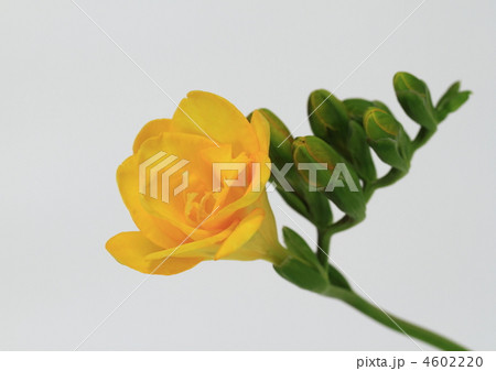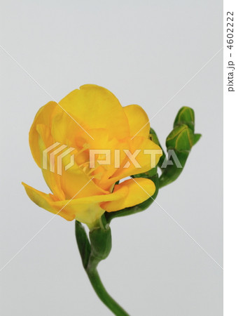 黄色いフリージア・一輪・ラッピング (コピースぺース・白背景)