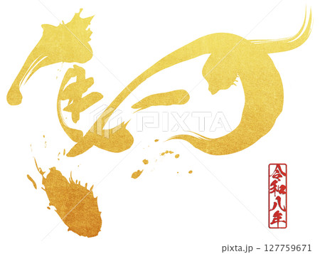 年賀状 年賀2026 午 午年 馬 墨絵 筆文字 水墨画 漢字 文字 版画 デザイン イラスト素材
