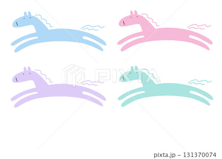 走るパステルカラーの4頭のかわいい馬 2026 手描き ガーリー
