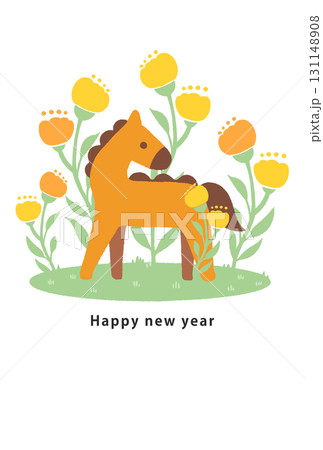 午年の年賀状用素材 かわいいウマの置物イラスト