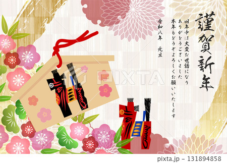 かわいい馬の絵馬、午年の年賀状テンプレート(文字なし)