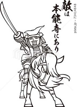「敵は本能寺にあり」と発し馬で出陣する明智光秀【白黒】