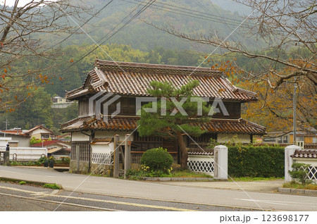 津和野城山公園と県立津和野高校の間の県道13号・萩津和野線の南方向を見た風景 島根県鹿足郡津和野町