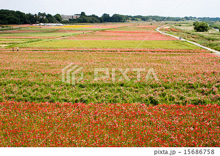 鴻巣市荒川畔の夕方のポピー畑