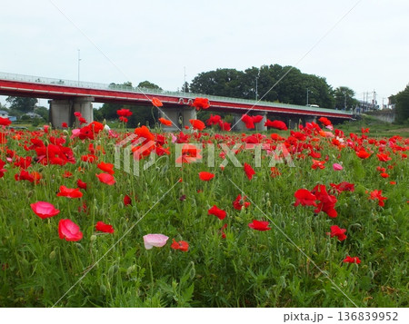 御成橋とポピー(馬室荒川河川敷にて撮影)