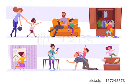 Adhd kids. Hyperactive people in action scenes hyperactive and impulsivity childrens exact vector cartoon template