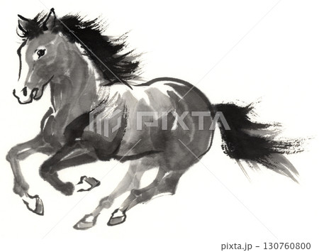 手描きのシンプルな走る馬キャラクター 2026・正月素材