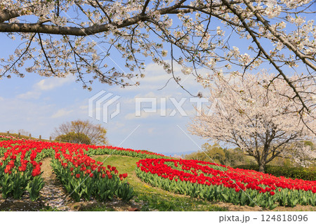 馬見丘陵公園 満開の桜とチューリップ と春の花々
