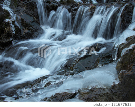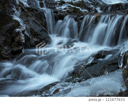 青森県十和田 奥入瀬渓流 馬門岩の氷柱