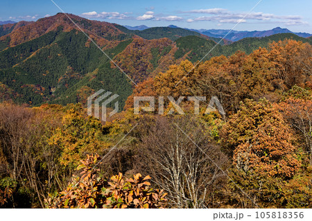 紅葉の陣馬山山頂から見る生藤山
