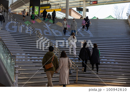 駅の階段を歩く人々の画像素材(写真・イラスト) 1ページ目