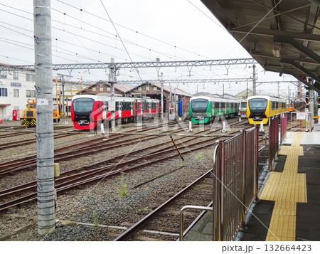 カラフルな電車の車両基地
