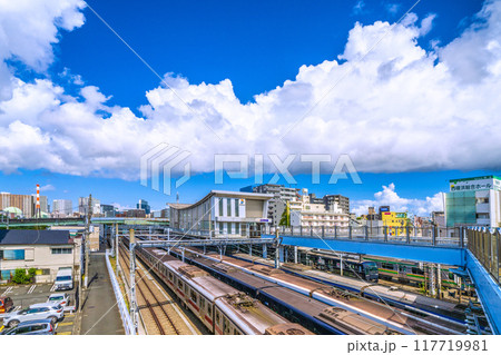 日本の横浜都市景観 8月。SOTETSU 平沼橋駅などを望む。夏空が広がる…