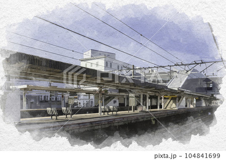 水彩画風 JR西条駅 南口駅前 広島県東広島市