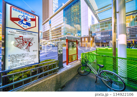 日本の横浜都市景観 横浜駅前に急増する悪質な放置自転車、奥にも…街角のダメ…自転車等放置禁止区域