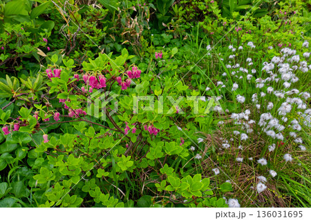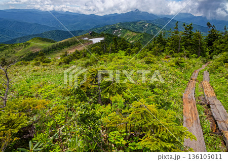 会津駒ヶ岳稜線のドウダンツツジとワタスゲ