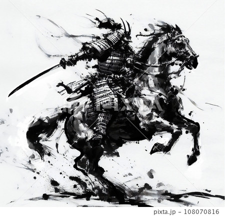 和風鎧武者 侍 水墨 AI生成画像 時代 SAMURAI 馬 風景