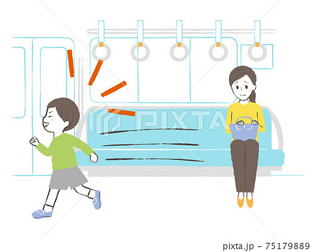 電車の中で走る子供