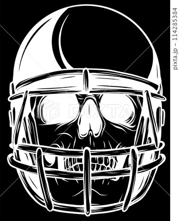 white silhouette of skull football helmet on black background