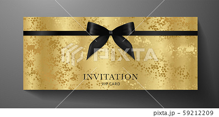 Luxurious VIP Invitation template with black bow, ribbon on golden textured background. Premium class design for Gift certificate, Voucher, Gift card