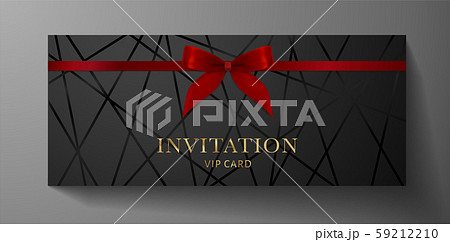 Luxurious VIP Invitation template with red blow, ribbon on black background and silver text. Premium class design for Gift certificate, Voucher, Gift card