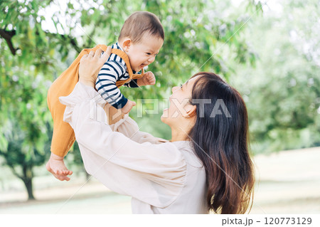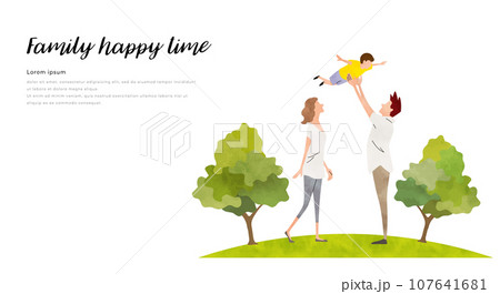 ベクターイラスト素材:幸せな家族、公園で高い高い