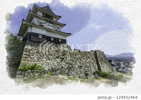 水彩画風 丸亀城 石垣 香川県丸亀市