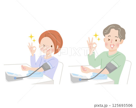 血圧を測るシニア夫婦