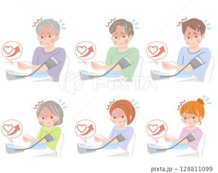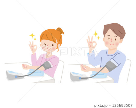血圧を測る家族のイラストセット