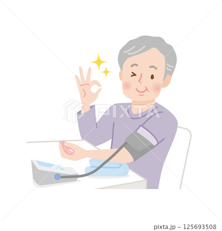 血圧を測るシニア男性